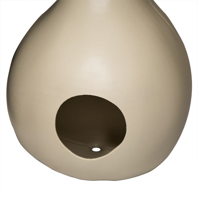 Help martins start a colony in your yard with the Heath Purple Martin Gourd. This individual apartment is shaped like a gourd, similar to those used to house martins in colonial times. Constructed from sturdy plastic, the home has an off-white color to keep it cool in the sun. A round, 2.25" diameter entrance hole leads to a spacious 6.5" long, 6.5" wide interior compartment. This helps birds place nestlings far away from the entrance, protecting them from predators. A small hole at the bottom of the gourd allows water to drain, so the nest stays dry. A predrilled hole at the top of the unit allows it to be hung from a rack system (not included), or added beneath existing housing for additional room. House martins in your yard with this Purple Martin Gourd.