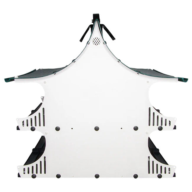 - White sides help regulate temperature, while the vibrant green roof provides color and protection from outdoor elements.